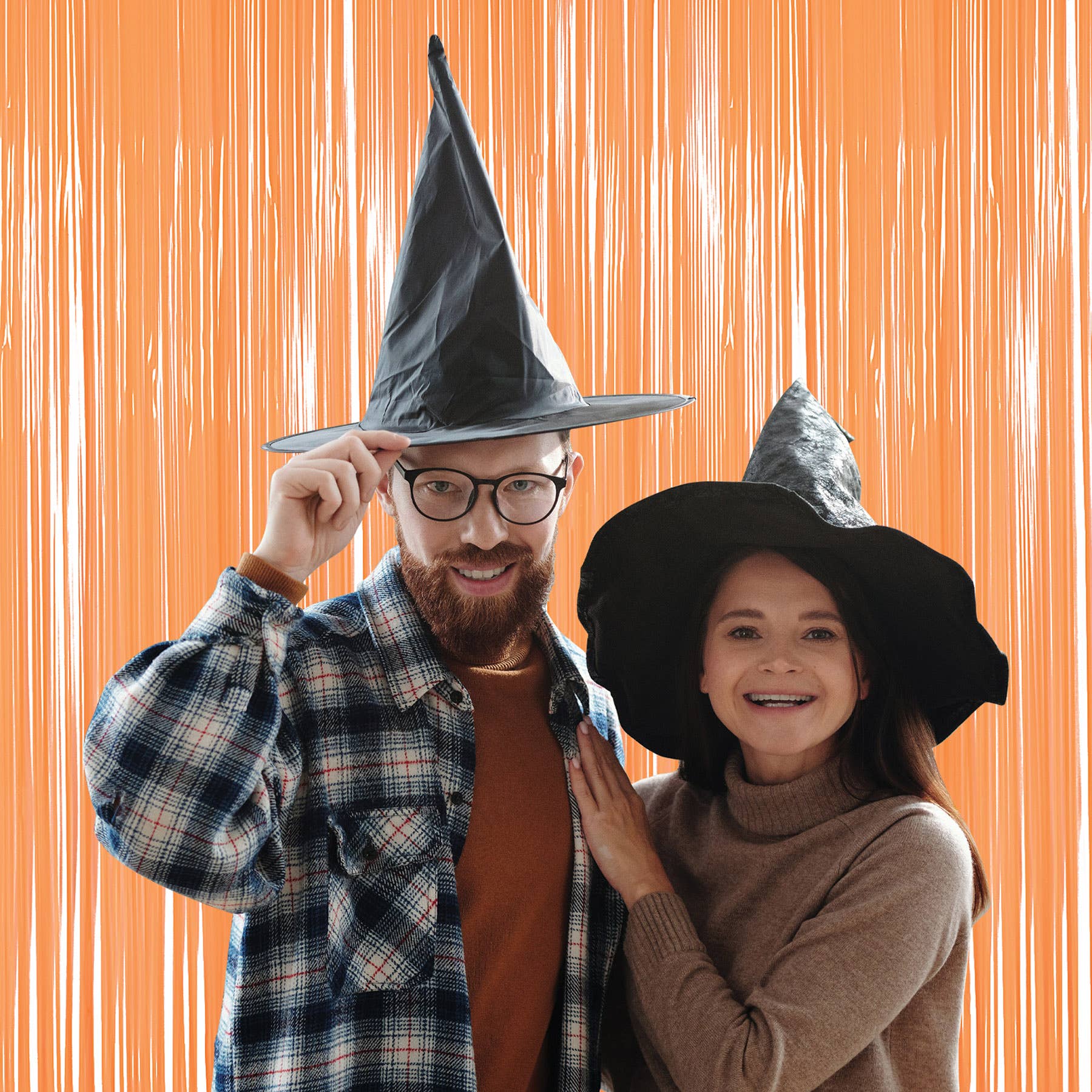 1-Ply Plastic Fringe Neon Orange Curtain, 8' x 3'