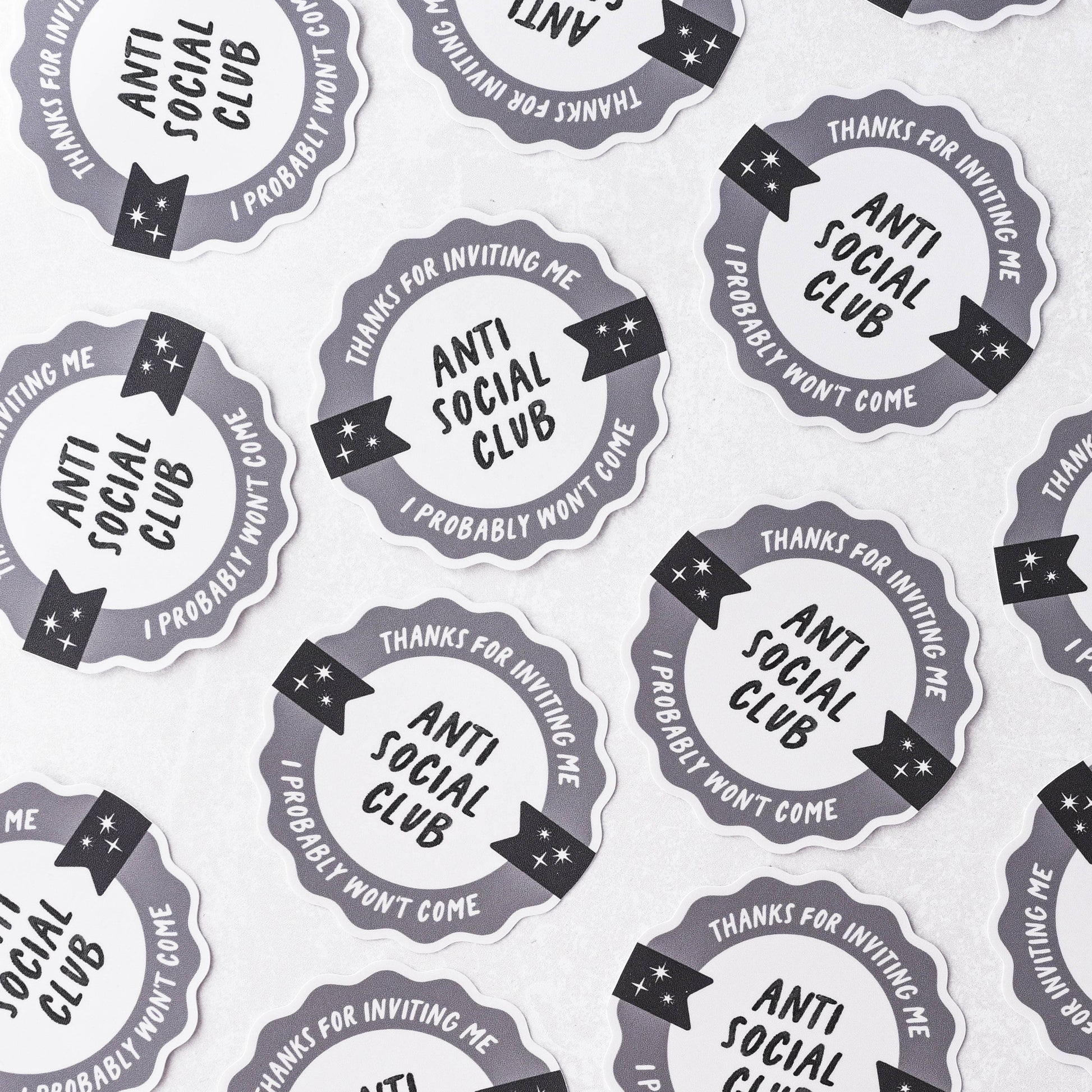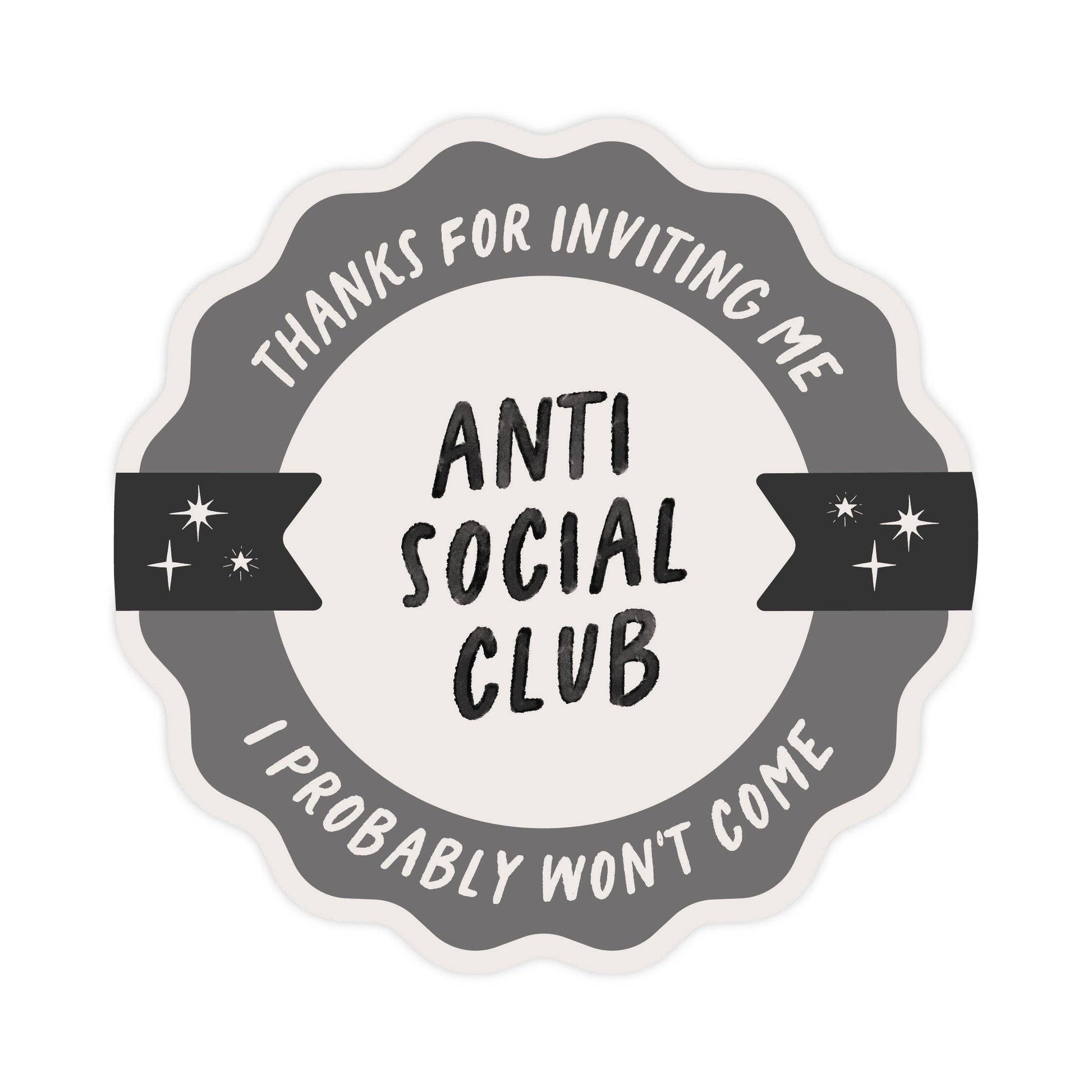 Welcome to the Anti-Social Club – where FOMO meets 'nah, I'm good!' Embrace your introverted side and stick this proudly as a badge of honour, because sometimes staying in feels just right.