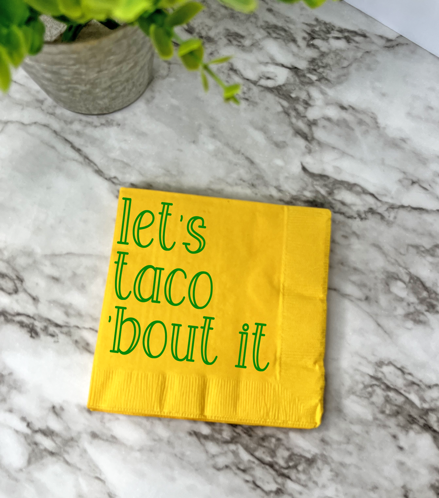 Cinco de Mayo Party decor Cocktail Napkins. Fun gift store filler party napkins, Let's taco 'bout it!