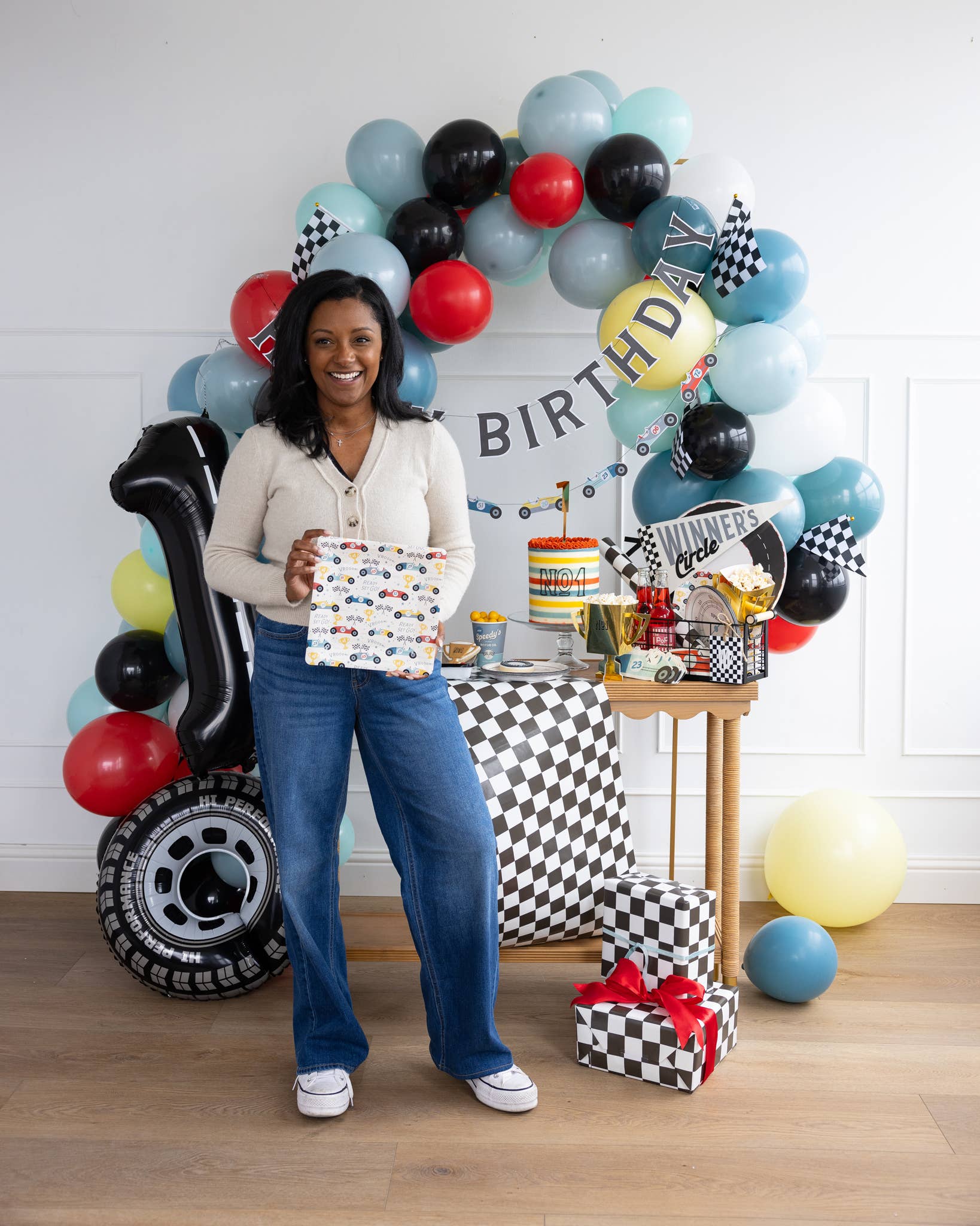 Add some vroom to your next birthday party with our Checkered Flag Table Runner! This fun and playful table runner features a checkered flag design that's sure to rev up your party decor. Perfect for any race car themed celebration!