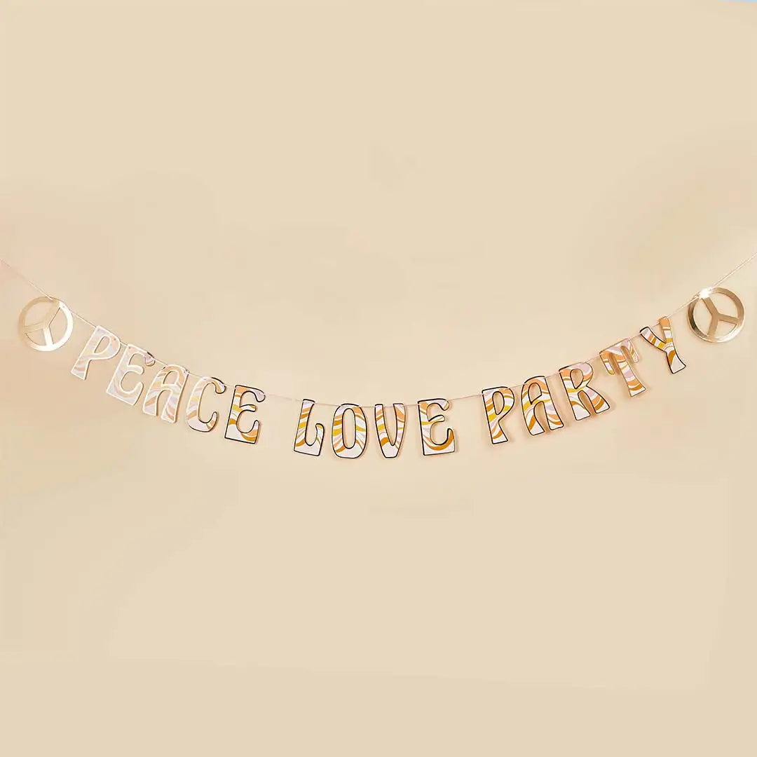 This 'Peace Love Party' Banner is a must-have for any groovy party! With a gold foiled edge for an extra special finishing touch!