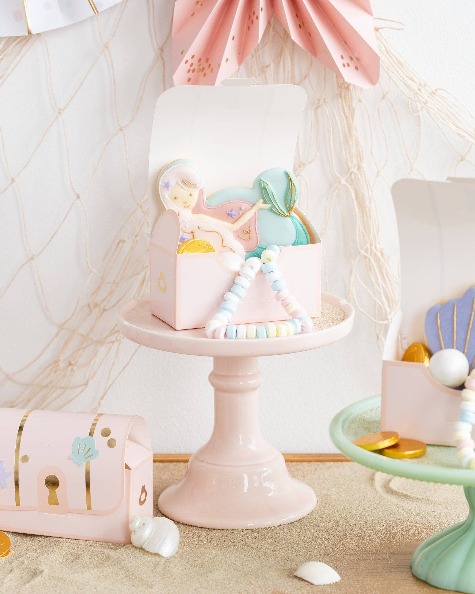 Unleash an ocean of fun with our Treasure Treat Box Set! These treasure chest treat boxes are perfect for any under the sea party. Fill them with your favorite treats and let your guests discover the hidden treasures inside. A fun and unique way to add some excitement to your event!