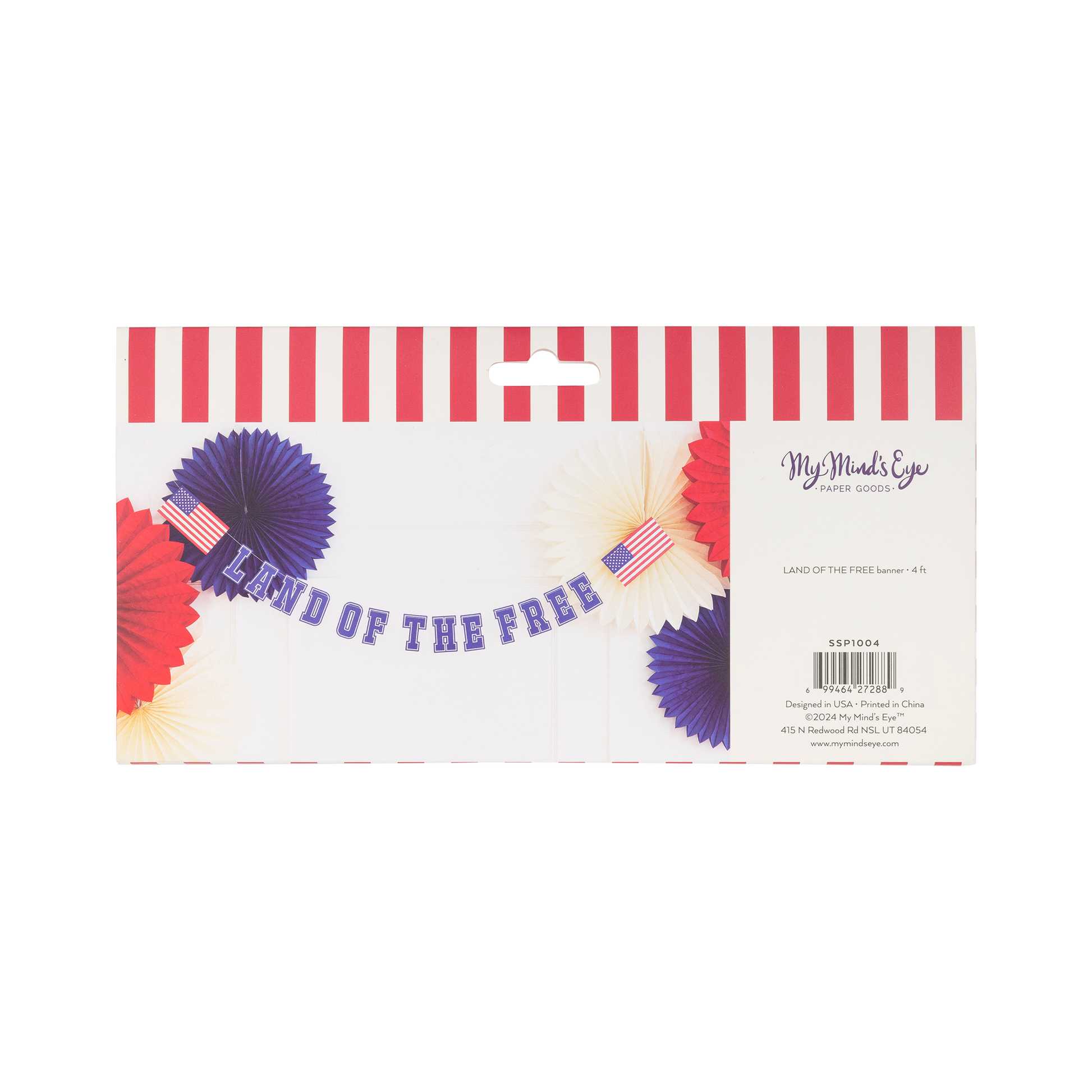 Unleash your patriotic spirit with the Land of the Free Banner. Show off your love for freedom and country with this eye-catching banner. Made with high-quality materials, this banner is durable and perfect for indoor or outdoor display. Embrace your American pride and let your flag fly high with this banner!