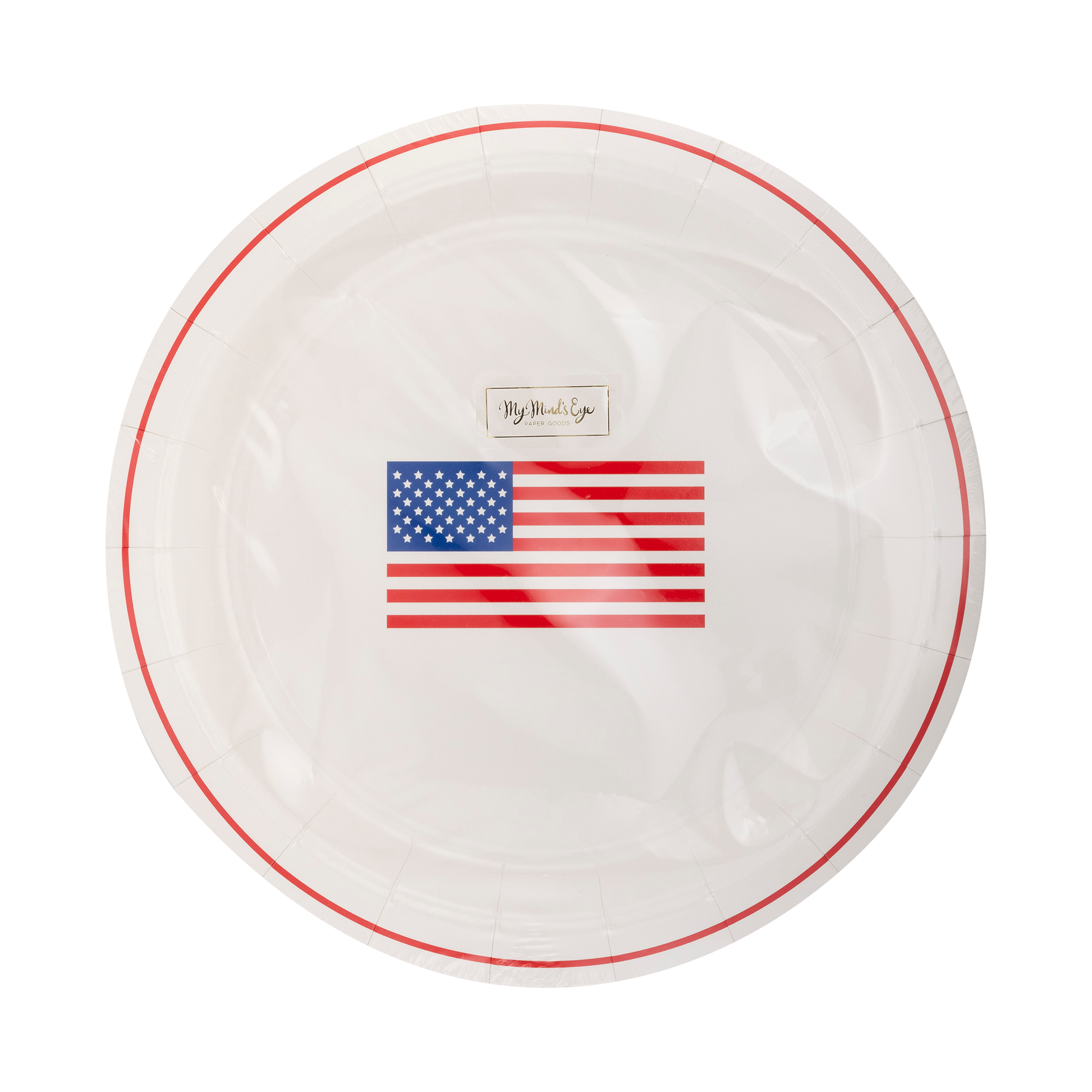 Get ready for a patriotic party with our SSP1040 - Round Flag Paper Plate! These USA flag themed plates are perfect for any celebration. Say goodbye to boring plates and hello to fun and flair. Let your party shine with these uniquely designed paper plates.