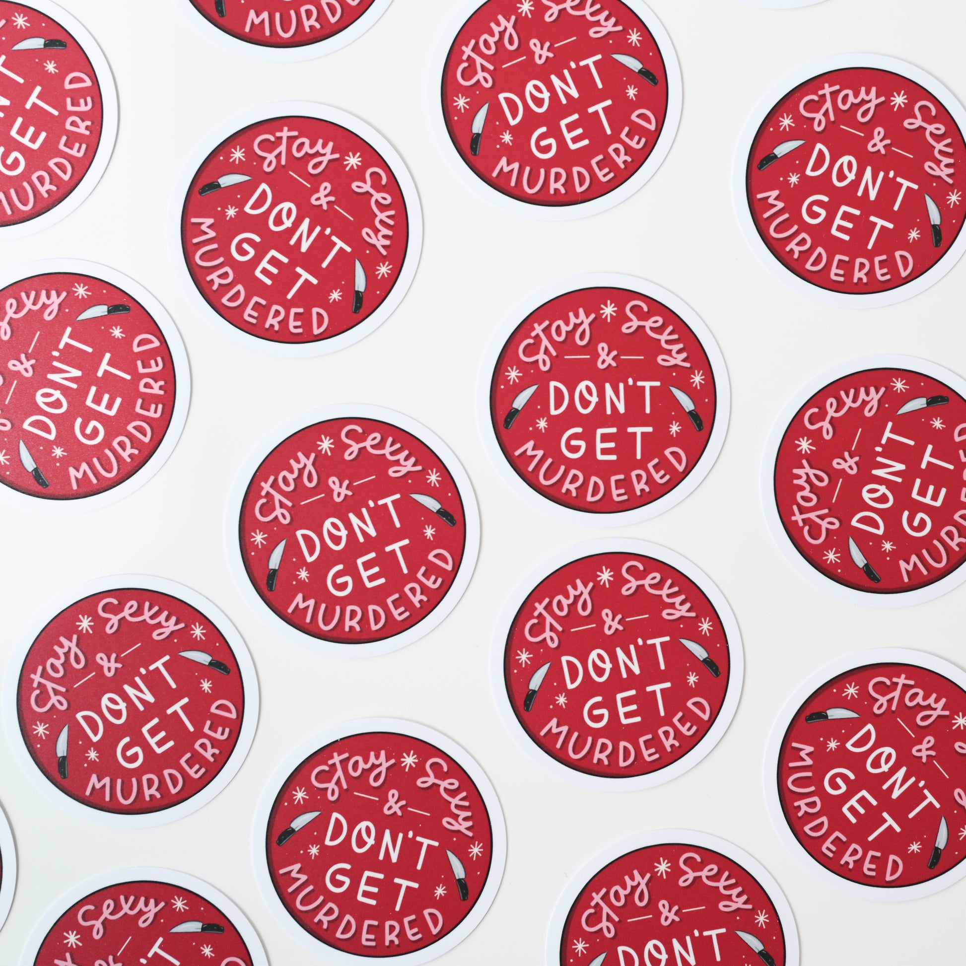 This Stay S*xy & Don't Get Murdered sticker is perfect for any murderino, podcast lover and true crime enthusiast. Stick it on your laptop, car, or anywhere you need a reminder to SSDGM!