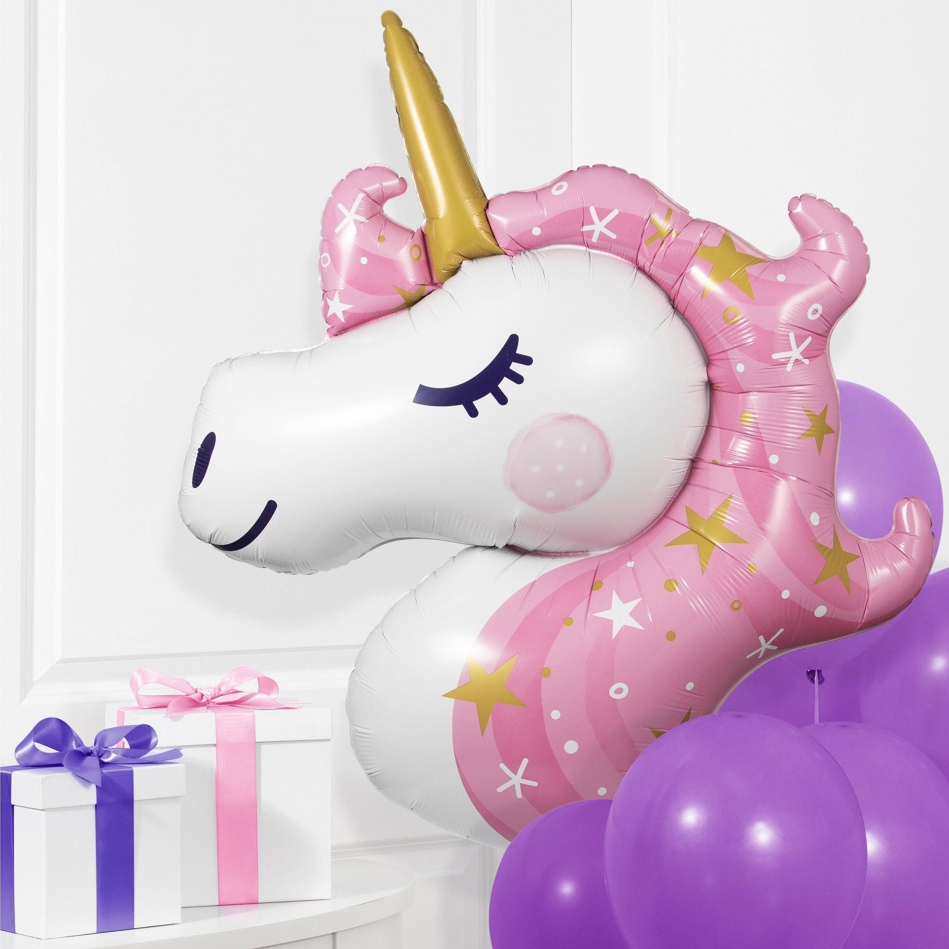 Bring the magic of unicorns to your kids birthday party with the Unicorn Galaxy Metallic Balloon Unicorn Shaped item. This item comes in a package of one, with 10 packages per case for a total of 10 items per case. The retail package size is 8.26 x 5.9 x 5.9 inches and the case dimensions are 8.27x5.9x5.9 inches. This product is perfect for any magical birthday celebration and can be easily shipped within one business day from our Illinois warehouse. So bring a little extra sparkle to your next kids birthday party with our Unicorn Galaxy Metallic Balloon Unicorn Shaped item.